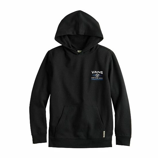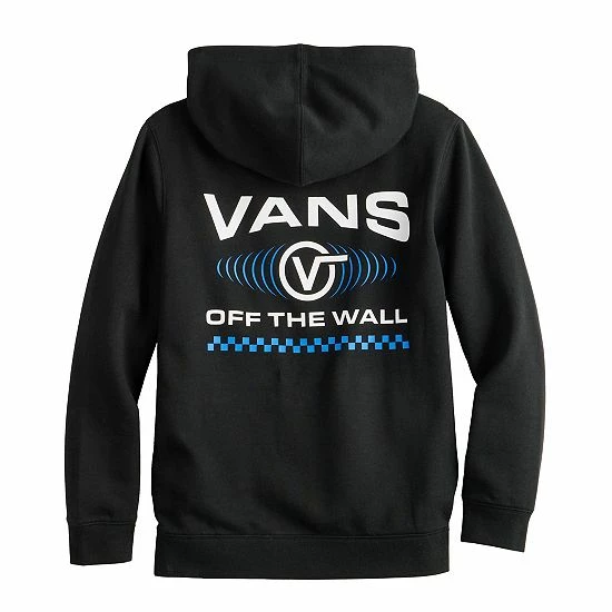With its cool front and back graphic, this boys’ Off the Wall pullover hoodie from Vans is sure to be your favorite skater dude’s cool weather go-to.