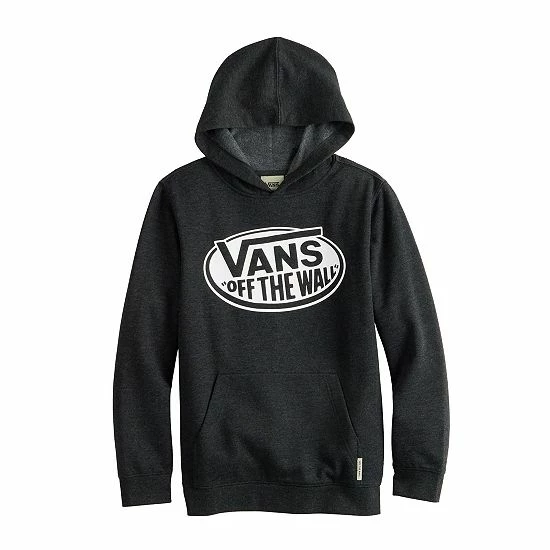 Keep his look cool and classic in this boys’ Off the Wall logo graphic hoodie from Vans.