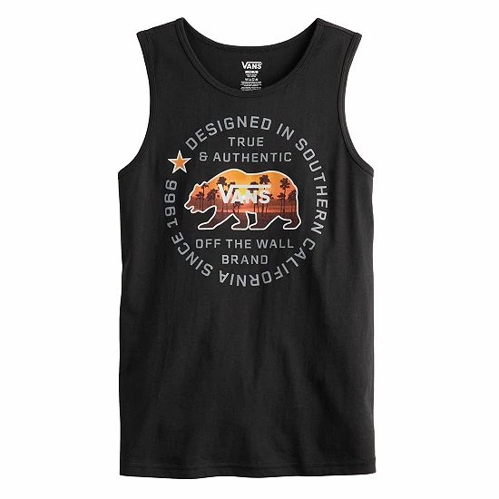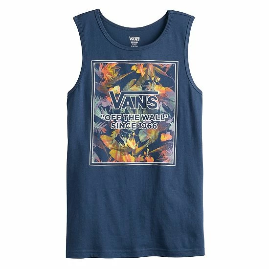 He’ll love the laid-back yet edgy look of this boys’ Vans graphic tank top.