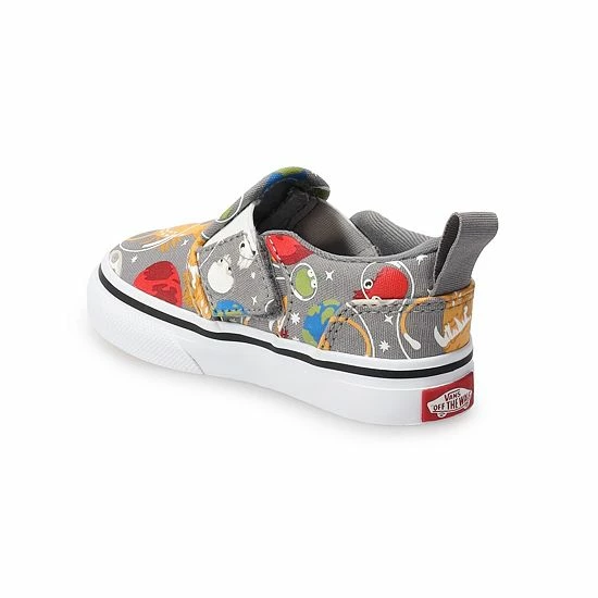 He’ll love the comfort and style of these Vans Asher V Glow Fish baby / toddler boys’ slip-on shoes.